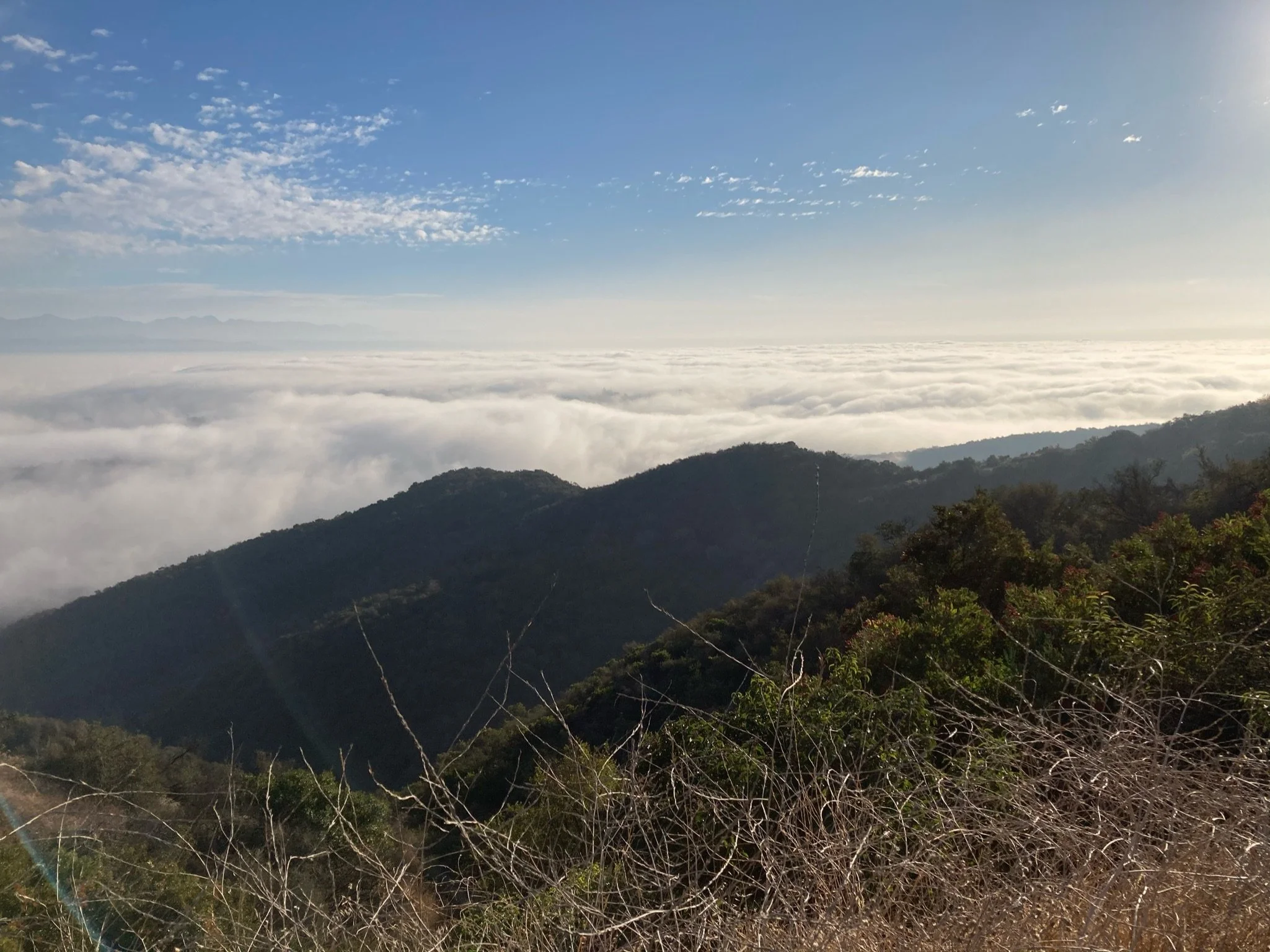 This was a magical moment caught as the morning fog was flowing through the low point on the ridge between two mountains. I made a point to try different routes every ride, so I never saw this crazy phenomena again. The valleys were often filled with fog in the mornings, and the air would change above 1500ft, getting hot and dry. It was most noticeable on the descent, sometimes plunging into the cool air at 30mph felt like diving into a pool.